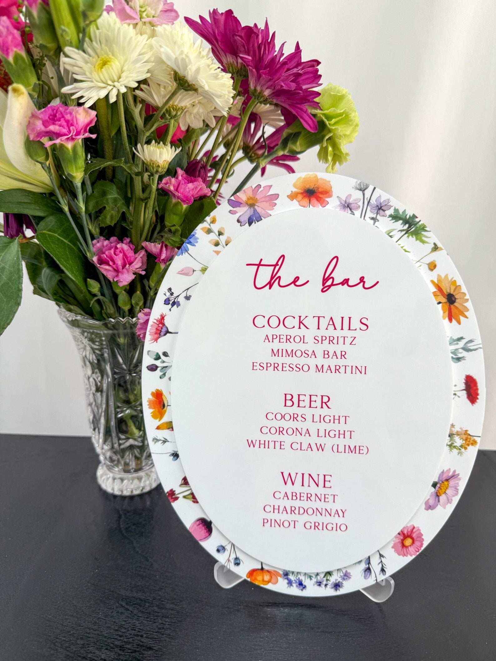 Wildflower oval bar sign - Perfect for Weddings & Celebrations!